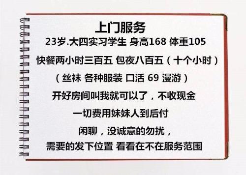 凡是有要求路费/定金/保证金/照片验证/视频验证等任何提前付费的行为,千万不要上当。同时也请注意仙人跳,在寻欢前不要露富和带过于贵重随身物品。本站为分享信息并不对寻欢经历负责,碰到有问题的信息,请及时举报给我们删除信息。