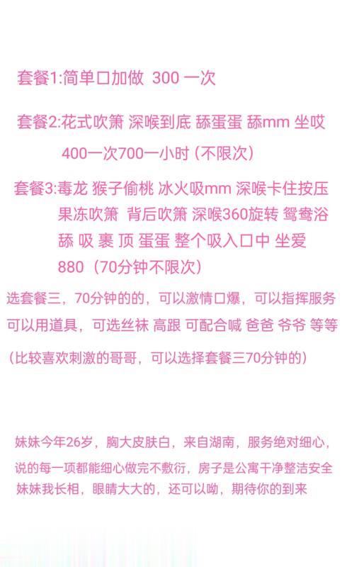 凡是有要求路费/定金/保证金/照片验证/视频验证等任何提前付费的行为,千万不要上当。同时也请注意仙人跳,在寻欢前不要露富和带过于贵重随身物品。本站为分享信息并不对寻欢经历负责,碰到有问题的信息,请及时举报给我们删除信息。