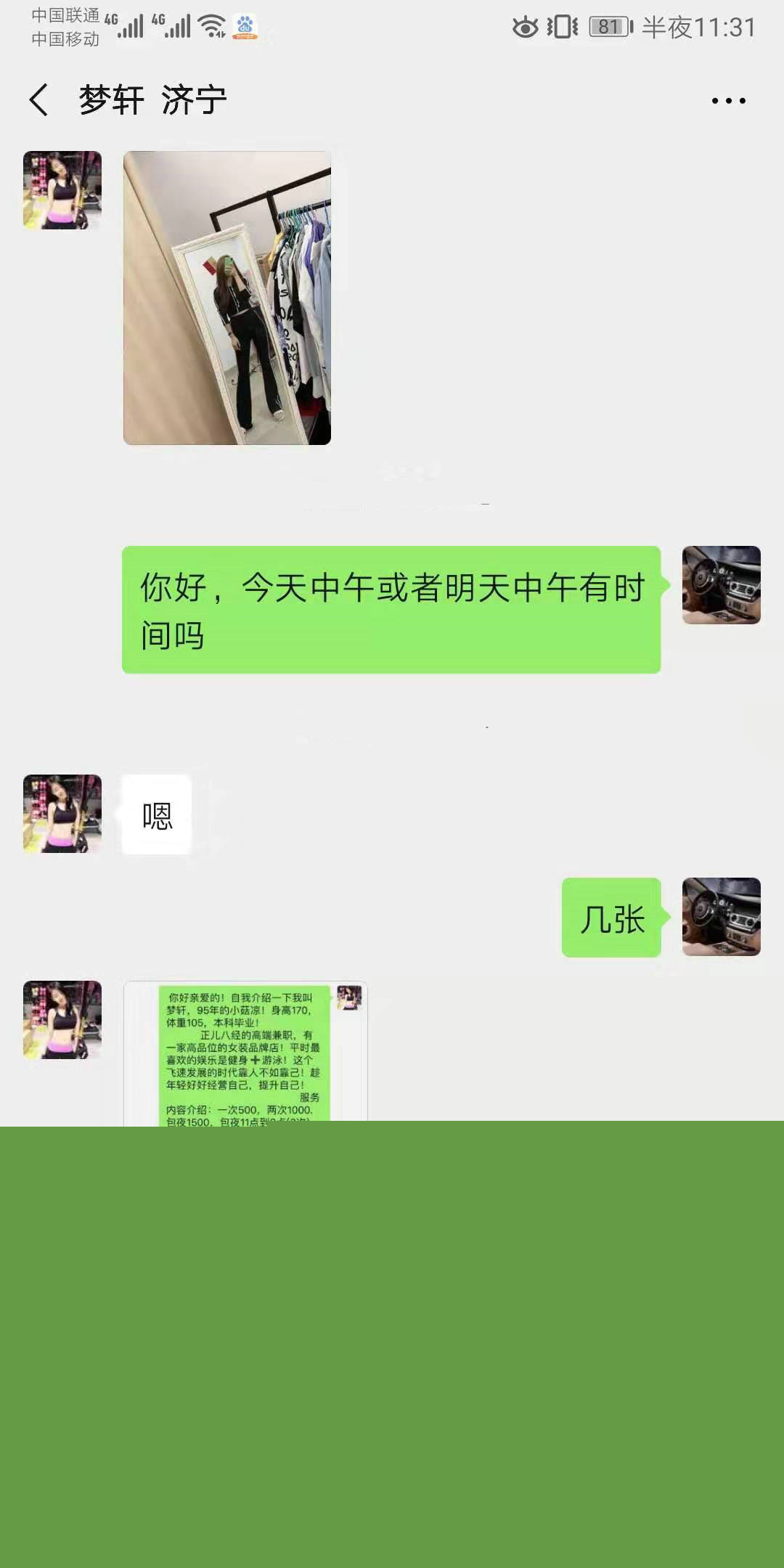 【验证细节】:在外出发一个月了,回到济宁就约了这妹子,之前联系过。她条件高,万达不去,让开好一点的酒店。她是卖衣服的,先预约。身材真好,服务过程很流畅,谈得来,可以长期联系。