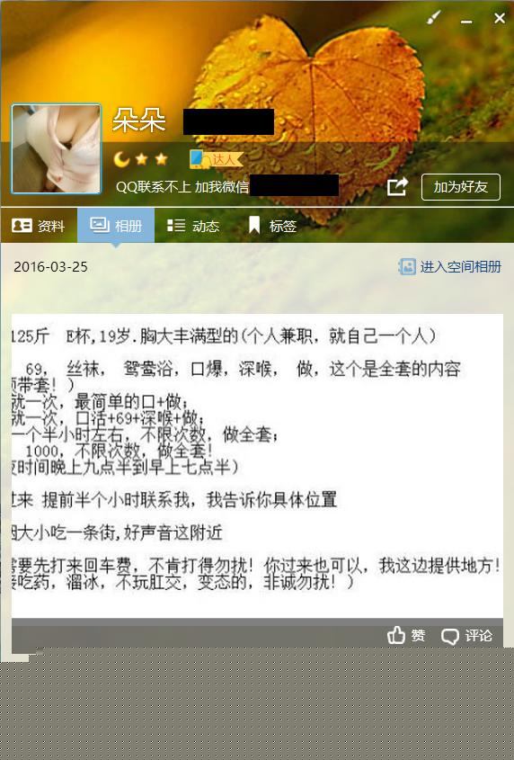 【验证细节】:偶尔看到这个妹子的介绍,聊了几句,看了看资料说是莱山兼职,没身材照,只有露脸照,看上去很漂亮,于是主动联系妹子,约定下午去看看,下午2点多,妹子果然发来酒店地址。进门一看好胖也没照片好看,不过嘴很甜。倒水换鞋什么的。我想反正来了,就试试呗,脱光发现妹子确实挺胖的,肚子上一团肉,不过皮肤还好挺白,胸又白又大,奶头有点小和黑,乳晕也很大,挺翘,有e罩杯。和妹子一起洗了洗,洗的很仔细,然后开始口活,口活做还不错,很温柔,让舔舔蛋蛋,也很听话。插进小妹妹,干20分钟交货。操完,妹妹很体贴的擦洗,又到了杯水,聊了会,她说是学生,刚出来做不久,长得不好,服务好,希望让我以后还找她。