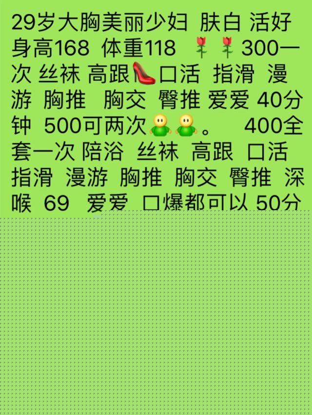【验证细节】:上个发的质量不太行,这次来个好的。电话指挥到地方,开门情趣+大白胸,D稳稳有了。简单洗了洗就开始运动,抗C不催人,还会夹。就是经常放假,毕竟本地人,介绍说29。实际30多吧,但是气质是真好。这几天可能要来大姨妈了,想约的抓紧